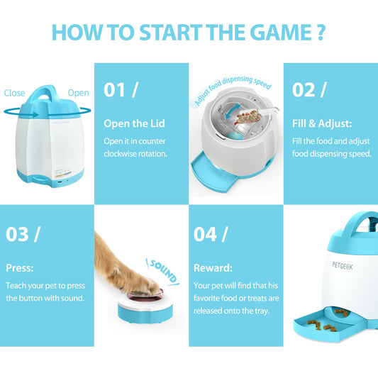 PETGEEK Automatic Dog Treat Dispenser, Puzzle Memory Training Activity Toy- IQ Training Dog Button Feeder, Remote Button Treat Dispenser for Dogs (Upgrade Blue)