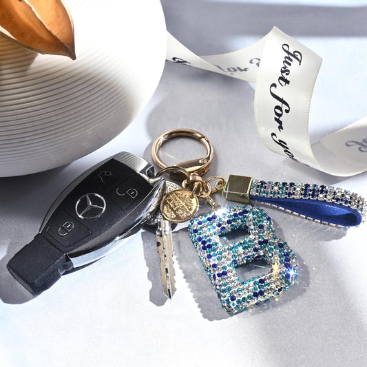 Pink Blue White Initial Letter Keychain Gift for Women Girls Bling Sparkly Cute Backpack Car Key Accessories Lanyard (N-blue)