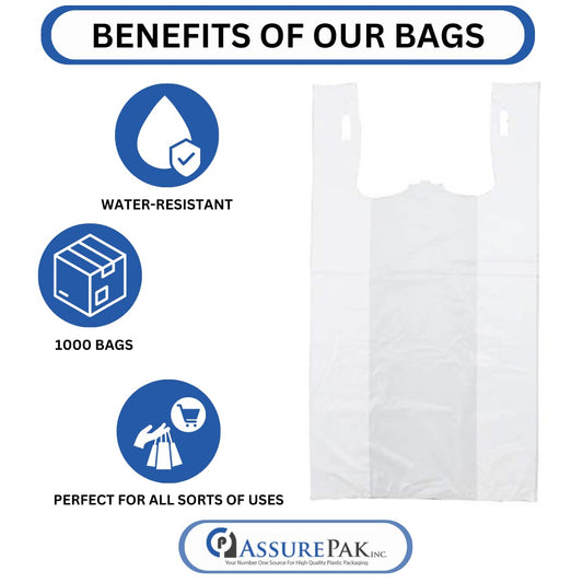 Plastic Bag-Standard White Plain T-Shirt Bag 11.5"x6.5"x21.5" 15 mic - 1000 bags/case