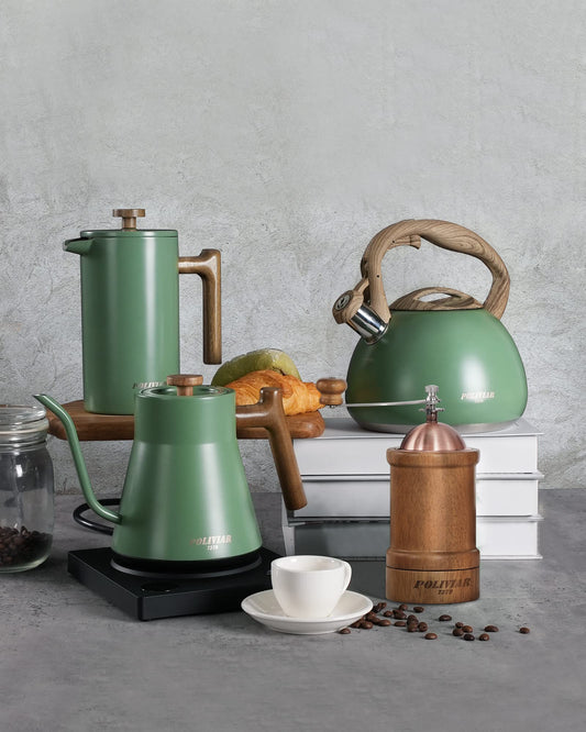 POLIVIAR French Press Coffee Maker, 34 oz Coffee Press with Real Wood Handle, Double Wall Insulation & Dual-Filter Screen, Food Grade Stainless Steel for Good Coffe and Tea (Flatland)