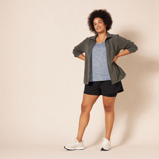 Amazon Essentials Women's Active Quick Dry Tech Stretch Short-Sleeve V-Neck T-Shirt (Available in Plus Size), Pack of 2, Black Heather/Navy Heather, Large