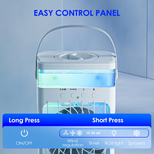 Portable Air Conditioners Parts Fans, 4-in-1 Portable Air Cooler Fan with 700mL Tank, 2 Speeds & 7-Color LED Lights - Mini Evaporative AC Unit for Camping, Office, Bedroom, Car