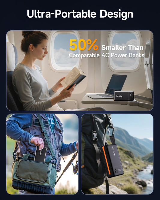 Portable Power Station 99.9Wh Power Bank for Camping Essentials Small Electric Mini Generator Large Lithium Battery with 110V AC Plug in Output 60W Type-C Laptop Home Backup Outdoor Emergency