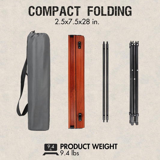 PORTAL Lightweight Aluminum Folding Square Table Roll Up Top 4 People Compact Table with Carry Bag for Camping, Picnic, Backyards, BBQ, Brown