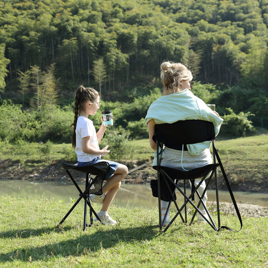 PORTAL Extra Large Quick Folding Tripod Stool with Backrest Fishing Camping Chair with Carry Strap