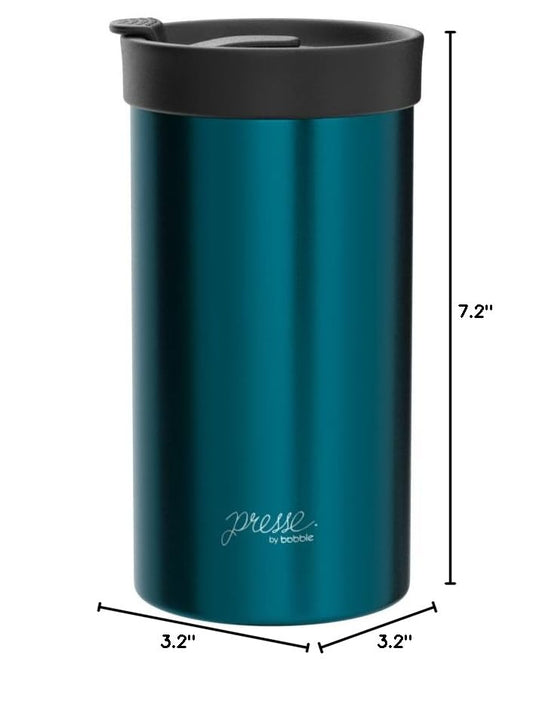 PRESSE by Bobble French Coffee Press And Insulated Stainless Steel Travel Tumbler for On-The-Go Brewing - 13 oz (Blue)