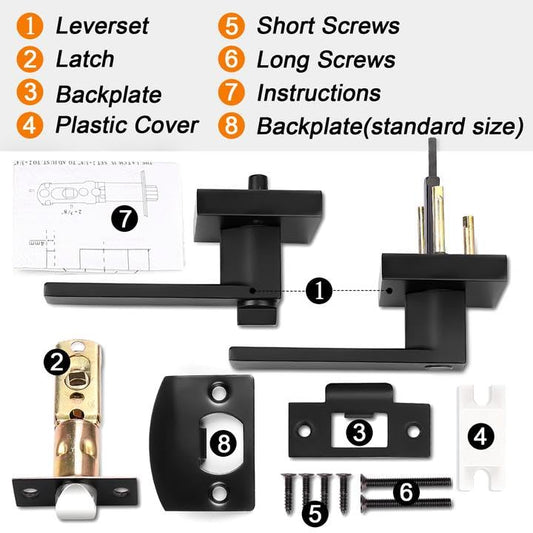 Probrico Heavy Duty Flat Black Square Privacy Interior Door Levers Bedroom and Bathroom Door Handles Keyless Bed/Bath Lockset (5 Pack)