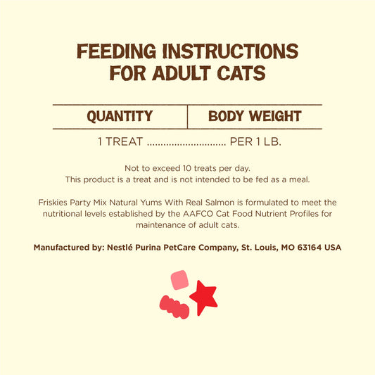 Purina Friskies Natural Cat Treats, Party Mix Natural Yums With Real Salmon and Vitamins, Minerals & Nutrients - (Pack of 10) 2.1 Oz. Pouches