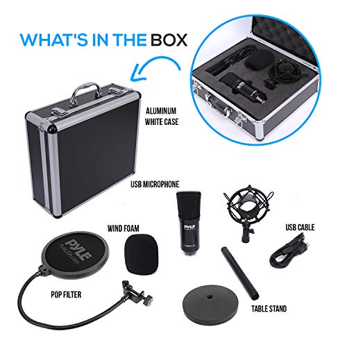 Pyle USB Microphone Podcast Recording Kit - Audio Cardioid Condenser Mic w/Desktop Stand and Pop Filter - for Gaming PS4, Streaming, Podcasting, Studio, YouTube, Works w/Windows Mac PC PDMIKT120