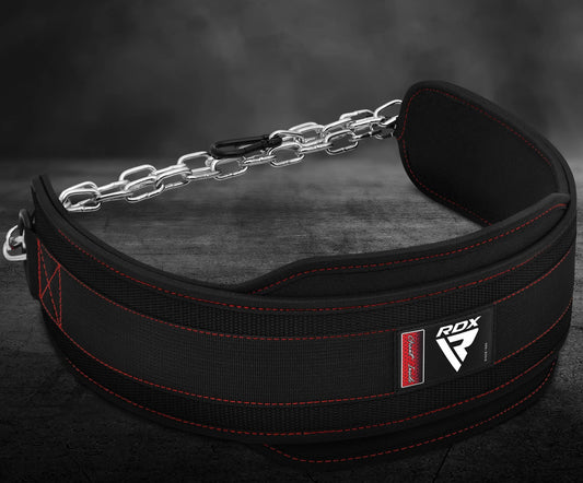 RDX Dip Belt for Weight Lifting, Heavy Duty 36 Inch Adjustable Steel Chain, Dipping Belt Chin Pull Ups Gym Training Bodybuilding Powerlifting Fitness Workout, 6” Padded Neoprene Back Support Men Women