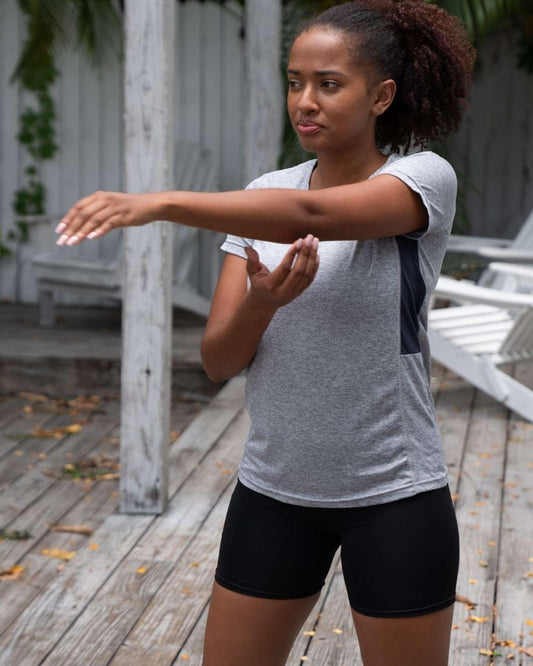 Real Essentials 5 Pack: Women's Dry Fit Short Sleeve V Neck Workout Top - Fitness Pilates Gym Athletic Yoga T-Shirt (Plus Available), Set 3, XL