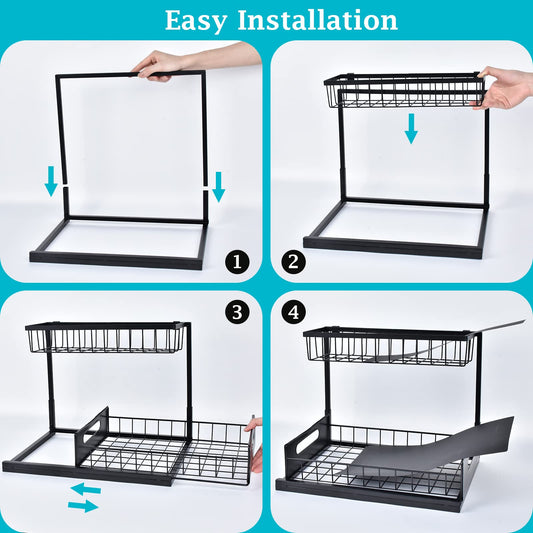 REALINN Under Sink Organizer, Pull Out Cabinet Storage 2 Tier Slide Out Sink Shelf, Kitchen Organizers and Storage, Black, 1 Pack