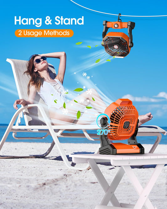 Rechargeable Solar Powered Fan,(30Hours Working) Solar Camping Fans & Led Lantern,8-inch Portable Fan with 7W Solar Panel, Battery Operated Powered Outdoor Tent Fans for Camping Essentials Accessories