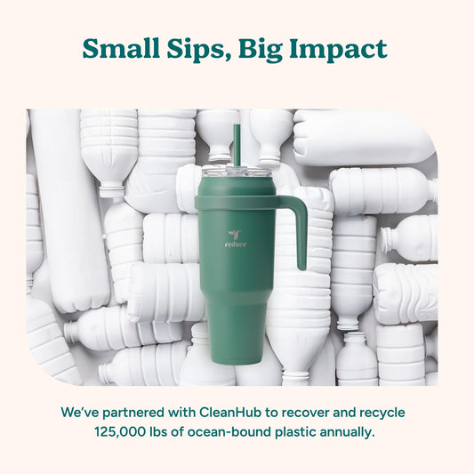 REDUCE 50 oz Stainless Steel Tumbler with Handle - Dual-Wall Vacuum Insulated Travel Mug, Sweat-Proof Lid & Reusable Straw - Keeps Drinks Cold for 24 Hrs, Fits Cupholders, Dishwasher Safe - Alpine