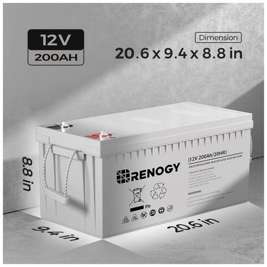 Renogy Deep Cycle AGM Battery 12 Volt 200Ah, 3% Self-Discharge Rate, 2000A Max Discharge Current, Safe Charge Most Home Appliances for RV, Camping, Cabin, Marine and Off-Grid System, Maintenance-Free