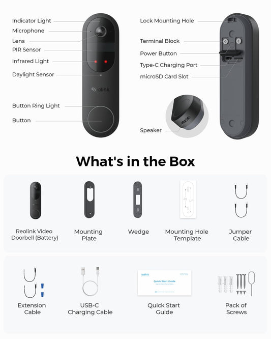 REOLINK Wireless 2K Battery Video Doorbell Camera, 150°x150° Head-to-Toe View, 2.4/5 GHz WiFi, Battery or Wired Power Options, Two-Way Talk, Person/Vehicle/Package Detection(Chime not Included)