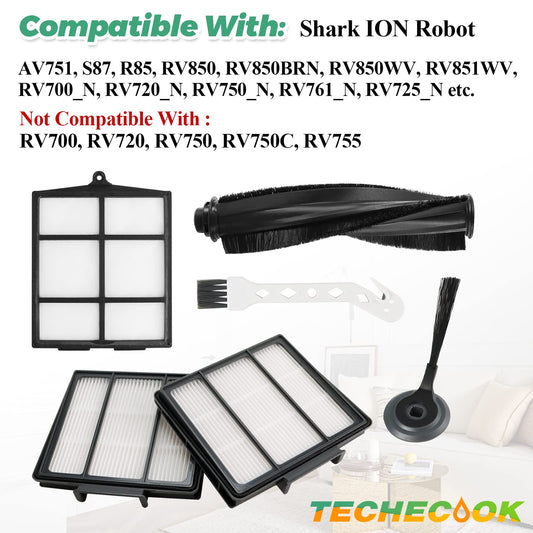 Replacement Parts for Shark ION Robot AV751 AV752 AV753 RV700_N RV720_N RV850 RV851WV Vacuum Cleaner Accessories by Techecook - 6 Side Brushes,3 Hepa Filter,1Main Brush,1 Filter Guard,1 Cleaning Brush