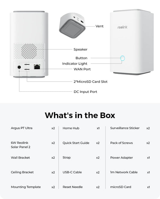 REOLINK 4K Solar Security Camera Outdoor, Encrypted Local Storage Camera System, 360° Pan Tilt, Smart Detection, No Monthly Fee, Home Hub with 4X PT Ultra + Solar Panel