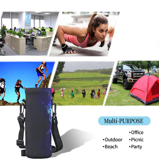 RICHEN Neoprene Water Bottle Carrier Bag with Adjustable Shoulder Strap, Insulated for 750ml/24oz Stainless Steel/Glass/Plastic Bottles (Blue Butterflies, 750ml)