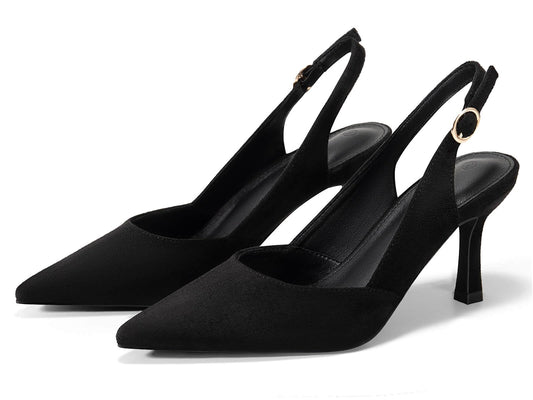 Rilista Womens Slingback Pumps Closed Pointed Toe Kitten Heel Sandals Wedding Evening Party Dress Shoes Black Suede