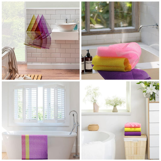 RIUOTA 3 Pieces Exfoliating Washcloth Shower Towel African Net Sponge Japanese Wash Cloth Face Exfoliating Sponge Loofah Exfoliating Body Scrubber for Body Exfoliation