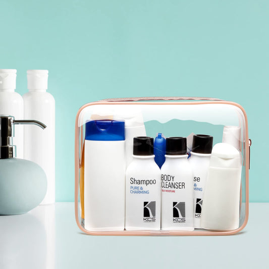 F-color TSA Approved Toiletry Bag - 2 Pack Clear Travel Bags for Toiletries, Clear Makeup Bags Quart Size Travel Bag, Carry on Airport Airline Compliant Bag, Rose Gold(for age 12 or above)