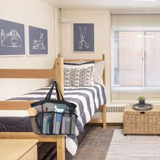 F-color Hanging Shower Caddy Portable - College Dorm Essentials for Guys with Hooks, Quick-Dry Shower Bag for Dorm Travel Gym Camping Essentials, Water-Resistant with Multiple Pockets, Black