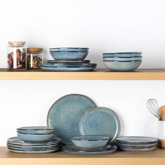 AmorArc Ceramic Dinnerware Sets,Handmade Reactive Glaze Stoneware Plates and Bowls Sets,Highly Scratch Resistant | Dishwasher & Microwave Safe Dishes Set,Service for 6 (18pc)