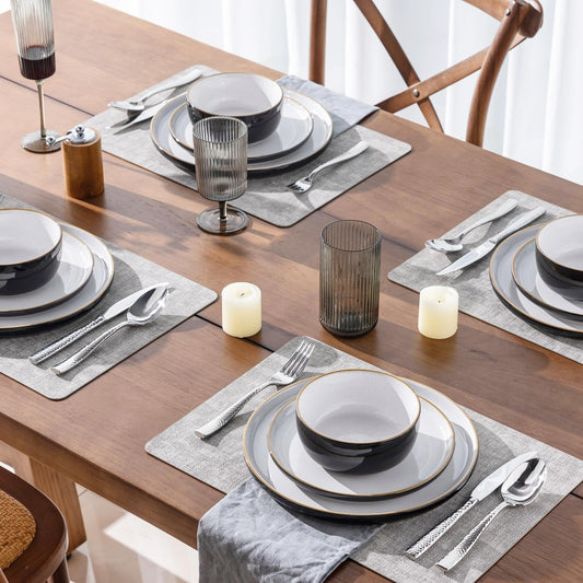 AmorArc Dinnerware Set - 12 Piece Ceramic Plates and Bowls, Stoneware Plates Handpainted, Dishwasher & Microwave Safe (Speckled Black & White, Service for 4)