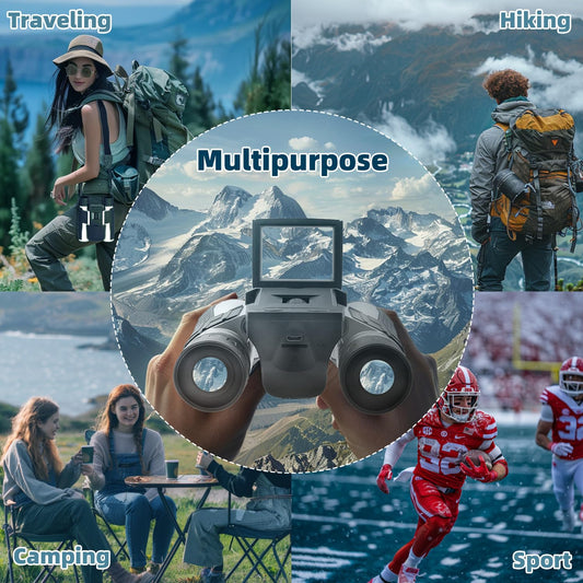 12x32 Binoculars for Adults, Digital Binoculars with Camera 5MP Photo Full HD Video 2" LCD Display Screen with 32GB Micro SD Card for Bird Watching Hunting Football Concerts Theatre (Silver)