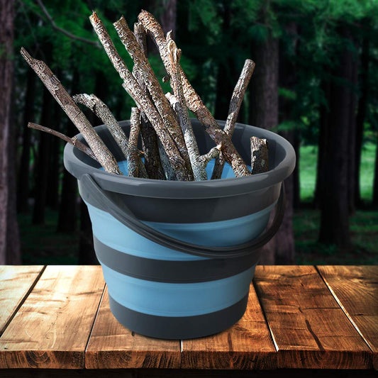2 Pack Collapsible Plastic Bucket with 2.6 Gallon (10L) Each, Foldable Round Tub for House Cleaning, Space Saving Outdoor Waterpot for Garden or Camping, Portable Fishing Water Pail (Blue & Orange)