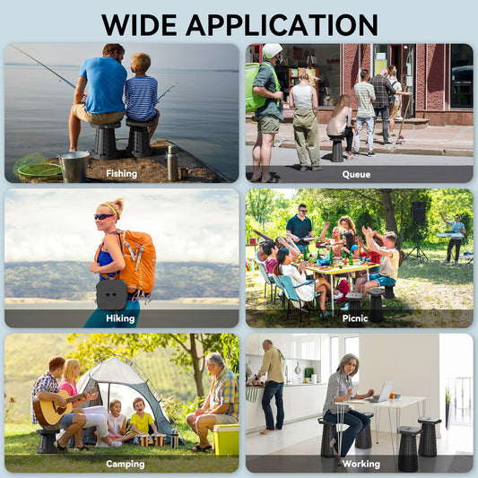 2025 Upgraded Portable Folding Stool, Collapsible Stool, Telescoping Camping Stool with Max Load Capacity 485lbs, Square Retractable Seat for Camping Gardening Fishing Hiking BBQ[Black]