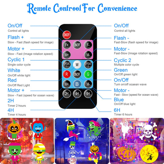 2025 Upgraded Brighter Halloween Decorations Projector Lights for Home, Display 8 Patterns at A Time (3D Ocean Wave & Patterns), 8 Themes Holiday Projector Halloween’ Day House Decoration Light Show