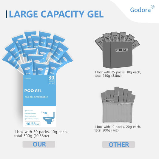 30 Packs ECO-Friendly Portable Toilet Poo Urine Gel Powder, Portable & Fast-Absorbing Camping Toilet Gel, Rapidly Biodegradable Eco Poo Urine Gel, Outdoor Portable Bedpans & Emergencies
