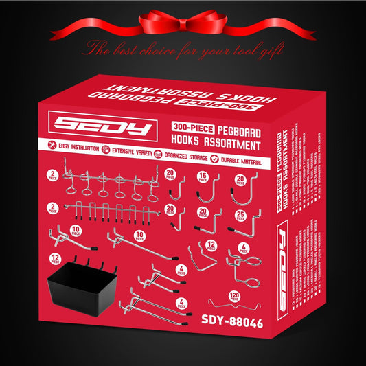 300-Piece Pegboard Hook Set, Pegboard Organizer Accessories for Hanging, Durable Metal Hooks for Tool Organization, Garage, Workshop, and Craft Storage