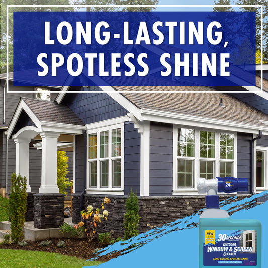 30 SECONDS Outdoor Window & Screen Concentrated Cleaner for Glass, Patio Doors, Fiberglass, Furniture - No Screen Removal Required, Spray & Rinse - Hose End Spray Attachment (2 PACK)