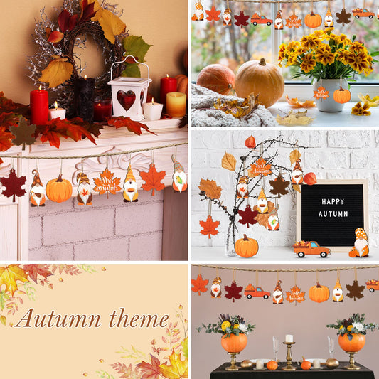 36 Pcs Thanksgiving Ornaments - Fall Tree Decorations with Autumn Pumpkin Gnome Leaf Cutouts, Hanging Ornaments, Wooden Craft Ornaments with Rope for Home (Autumn Style)