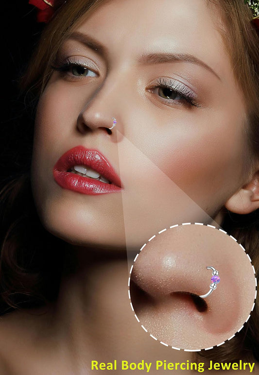 4PCS Stainless Steel Nose Rings Set for Women Men,Hypoallergenic 20G L-Shaped Nose Studs 18G Purple Opal Hinged Small Silver Hoops for Nostril Septum Cartilage Helix Rook 2nd/3rd Earlobe Lip Piercings