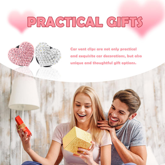 4PCS Heart-Shaped Car Vent Clips with Rhinestone,Bling Air Vent Clips Car Decorations,Premium Shiny Car Clips for Vents CCar Accessories Interior for Cars,Trucks,SUVs (White)