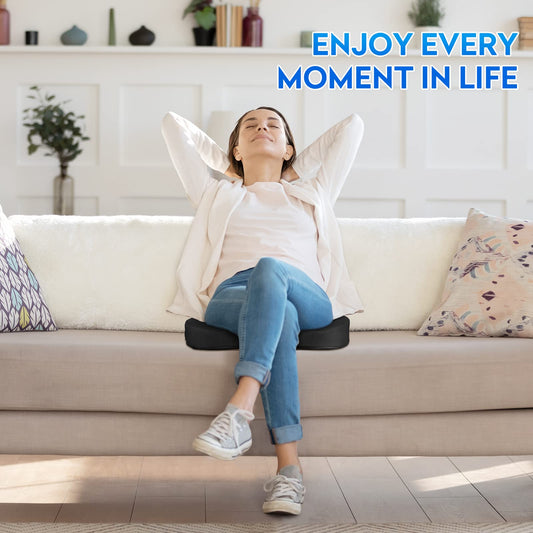 Ergonomic Memory Foam Seat Cushion with Non-Slip Base - Office Chair, Car, Airplane, Wheelchair & Bleacher Support - Pressure Relief for Back, Tailbone & Sciatica (Black)