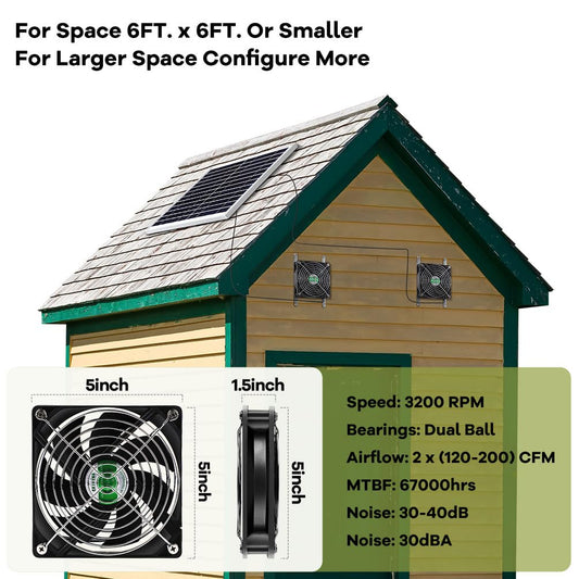 erifyng Solar Powered Fan, Solar Fan for Shed, Chicken Coop, Greenhouse, Outside with Two IPX7 Waterproof 5In Fans 13Ft On/Off Switch Cable Exhaust Intake Mounting Way and Installation Kits