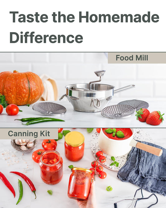 Ergonomic Food Mill Stainless Steel With 3 Grinding Discs - Rotary Food Mill for Tomato Sauce, Applesauce, Puree, Mashed Potatoes, Jams, Baby Food