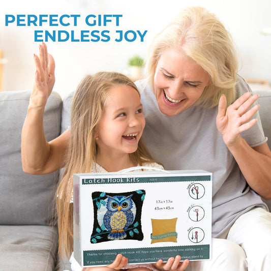 EsLuker.ly Full Moon Owl Latch Hook Pillow Kit for Adults Beginners, DIY Throw Pillow Cushion Cover Making Set with Pre-Printed Canvas & Crochet Yarn, Creative Latch Hook Craft Kits for Home Decor