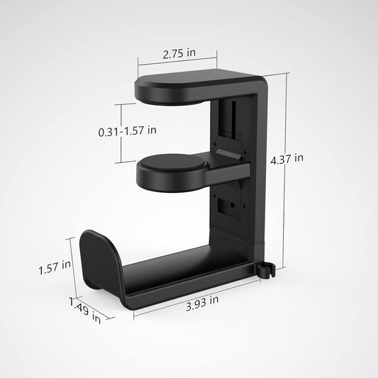 EURPMASK Rotating Headphone Stand - PC Gaming Headset Holder, Adjustable Clamp-on Under Desk Hanger With 360 Degree Swivel & Cable Clip Organizer - Black