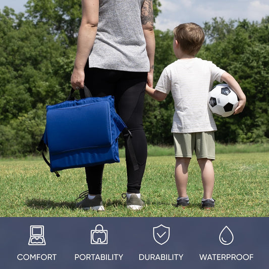 Everlasting Comfort Stadium Seats with Back Support - Adjustable Memory Foam Bleacher Chairs with Back and Cushion, Portable, Easy Folding Stadium Seat Cushion with Storage Pocket