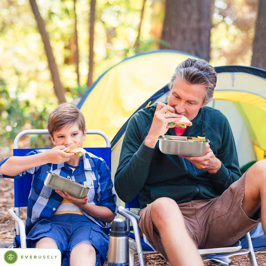 Everusely - Bento Box - Sage, 60oz / 1.8 L - Stainless Steel Lunch Box with Leakproof Condiment Container - 3 Compartment Snack Organizer for On the Go Meals - Freezer & Dishwasher Safe