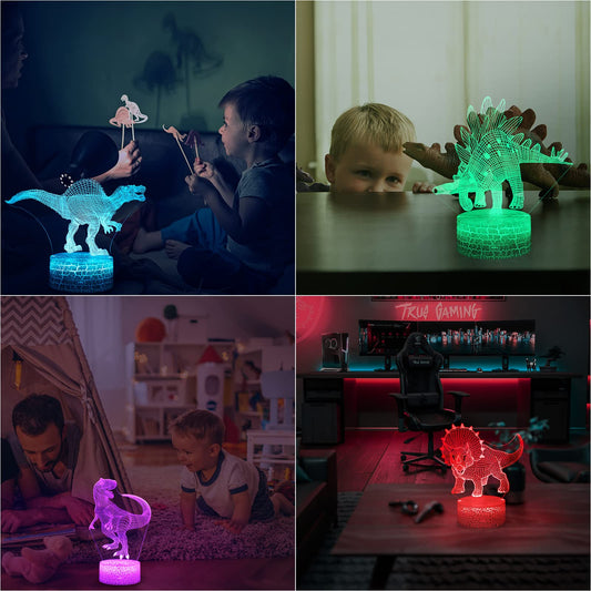 EXOOHOUO 3D Dinosaur Night Light, Dino Lamp for Boys, 4 Pcs Hologram Illusion Dinosaurs Touch Lamp with 16 Color Changing & Remote Dinosaur Gifts for Boy Girl Teen Birthday Bedroom