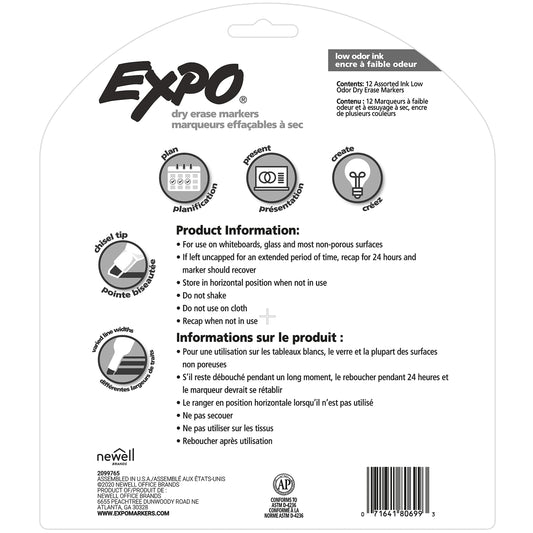 EXPO Dry Erase Markers, Low Odor Ink, Assorted Colors, Chisel Tip, 12 Count - Easily Erases, Vibrant Ink, Ideal for Classroom, Back to School Supplies, Teachers, Office, Whiteboard & Home