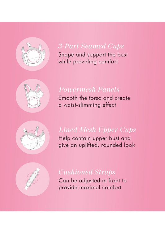 Exquisite Form womens Fully Front Close Longline Lace Posture Bra, Black, 38B US