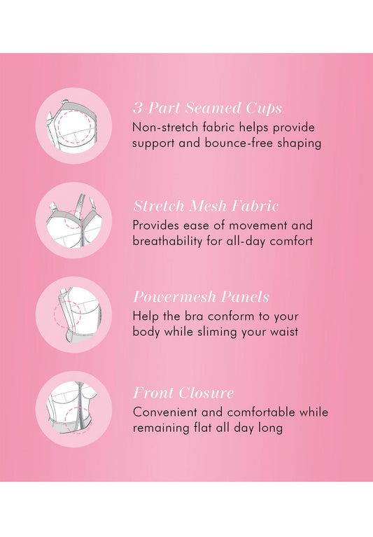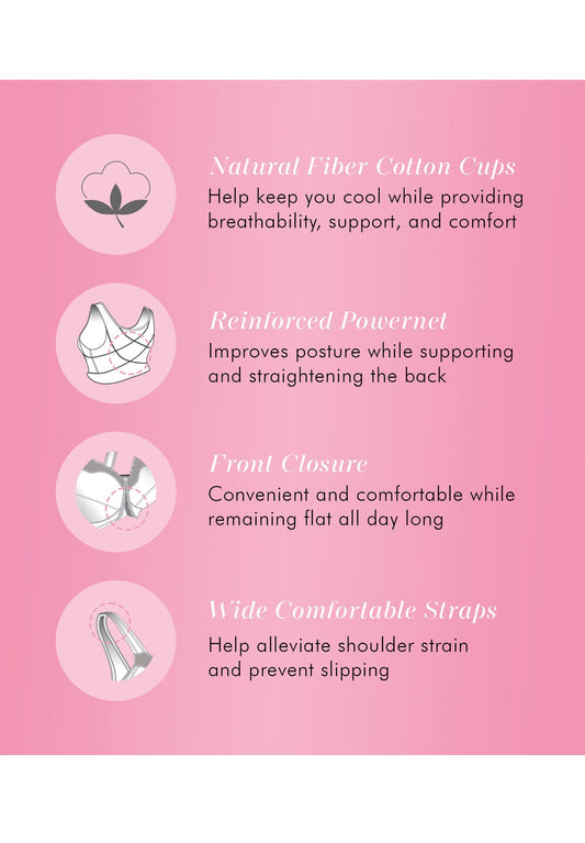 Exquisite Form 5100531 Women's FULLY Wireless Cotton Back & Posture Support Bra with Front Closure & Lace